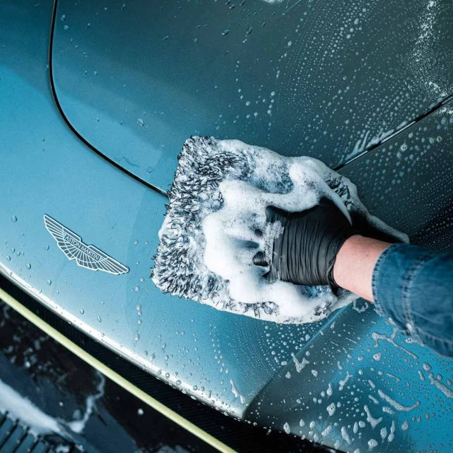 - Appliquer le shampoing sur carrosserie humidifiée au préalable à l’aide d’une éponge de lavage. Pour un effet hydrophobe maximal, verser quelques gouttes sur le gant et étaler sur une voiture propre et humide.