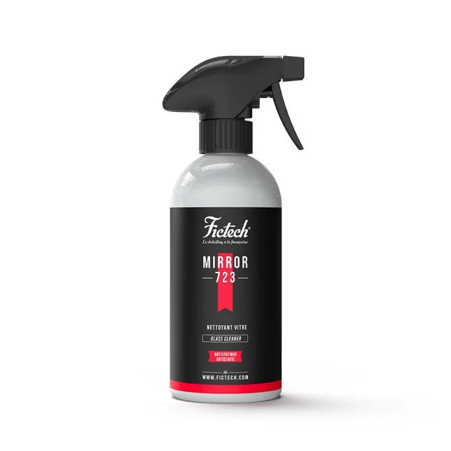 Mirror-723 de la marque française Fictech est un nettoyant vitre anti-statique utilisable sur toutes les surfaces vitrées (même les films teintés).