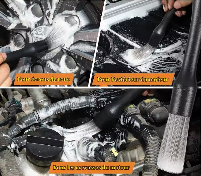 Les fibres denses et fermes permettent de désincruster la saleté tenace sans se déformer. Parfait pour les recoins du moteur, les écrous de roue, les zones graisseuses ou les plastiques extérieurs texturés.